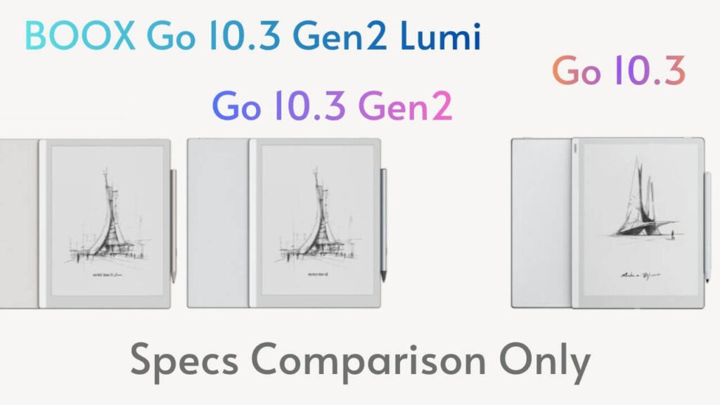 | Features | Boox Go 10.3 | Go 10.3 Gen2 Lumi | Go 10.3 Gen2 |